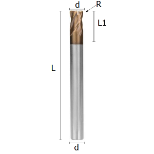 BALL-NOSED FOUR FLUTE REGULAR END MILLS SERIES COATED